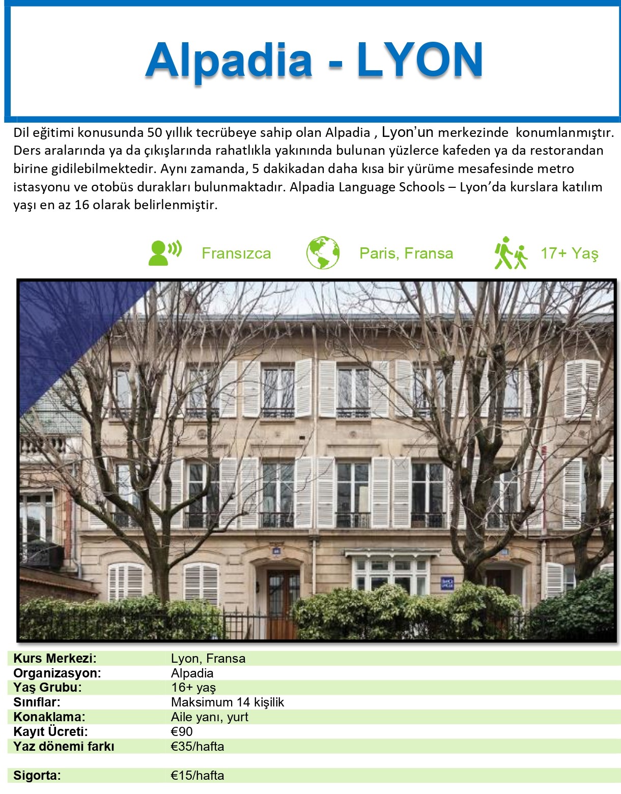Alpadia - Lyon - FransaYURT DIŞI DİL OKULU