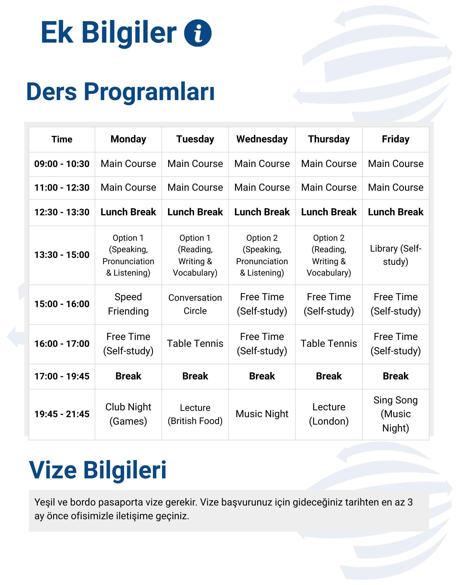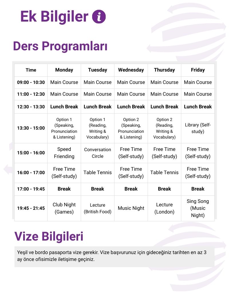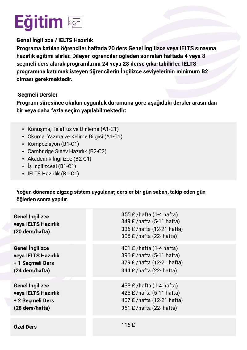 Kurs başlamadan 15 günden daha az süre önce ya da kurs başladıktan sonra iptal bildirimi alınırsa, 4 haftalık eğitim ücreti, kayıt ücreti ve banka masrafları veya sınav ücretleri gibi diğer giderler tahsil edilir. Kalan tutar iade edilir.