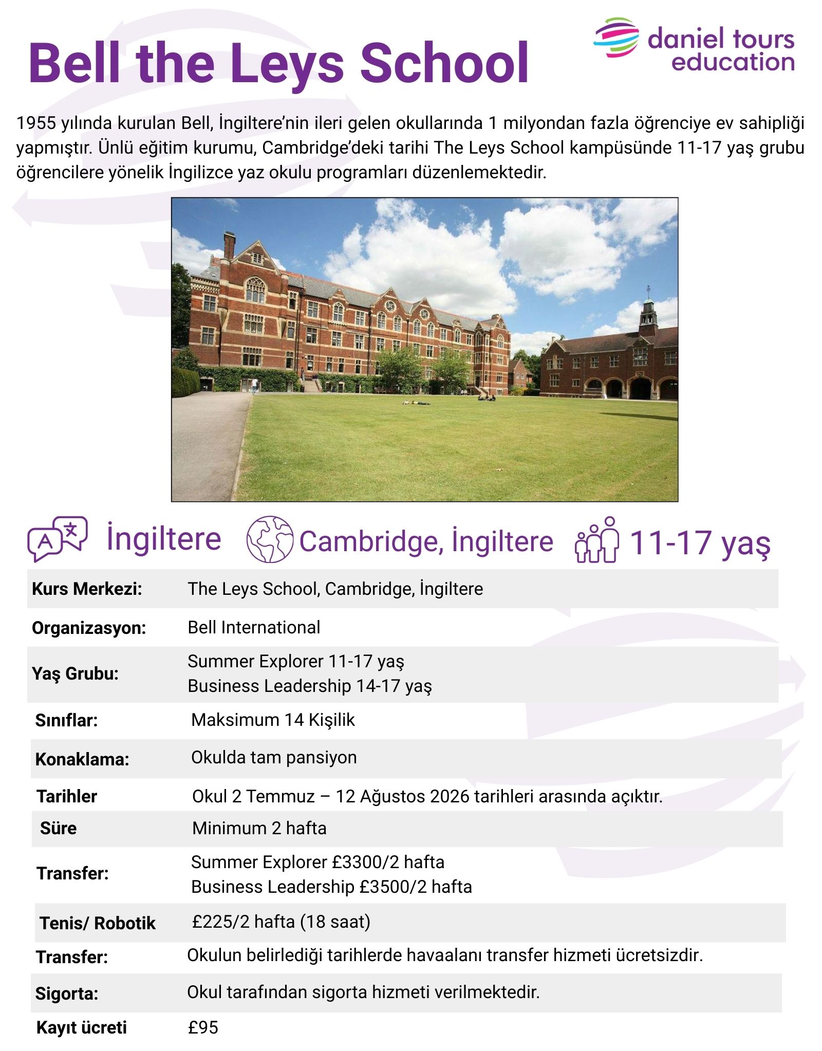 Bell The Leys School Cambridge - İngiltereYURT DIŞI YAZ KAMPI