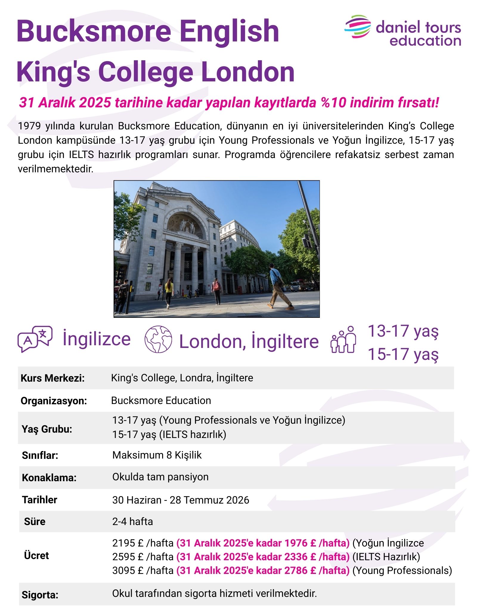 Bucksmore Education - King's College LondonYURT DIŞI YAZ KAMPI
