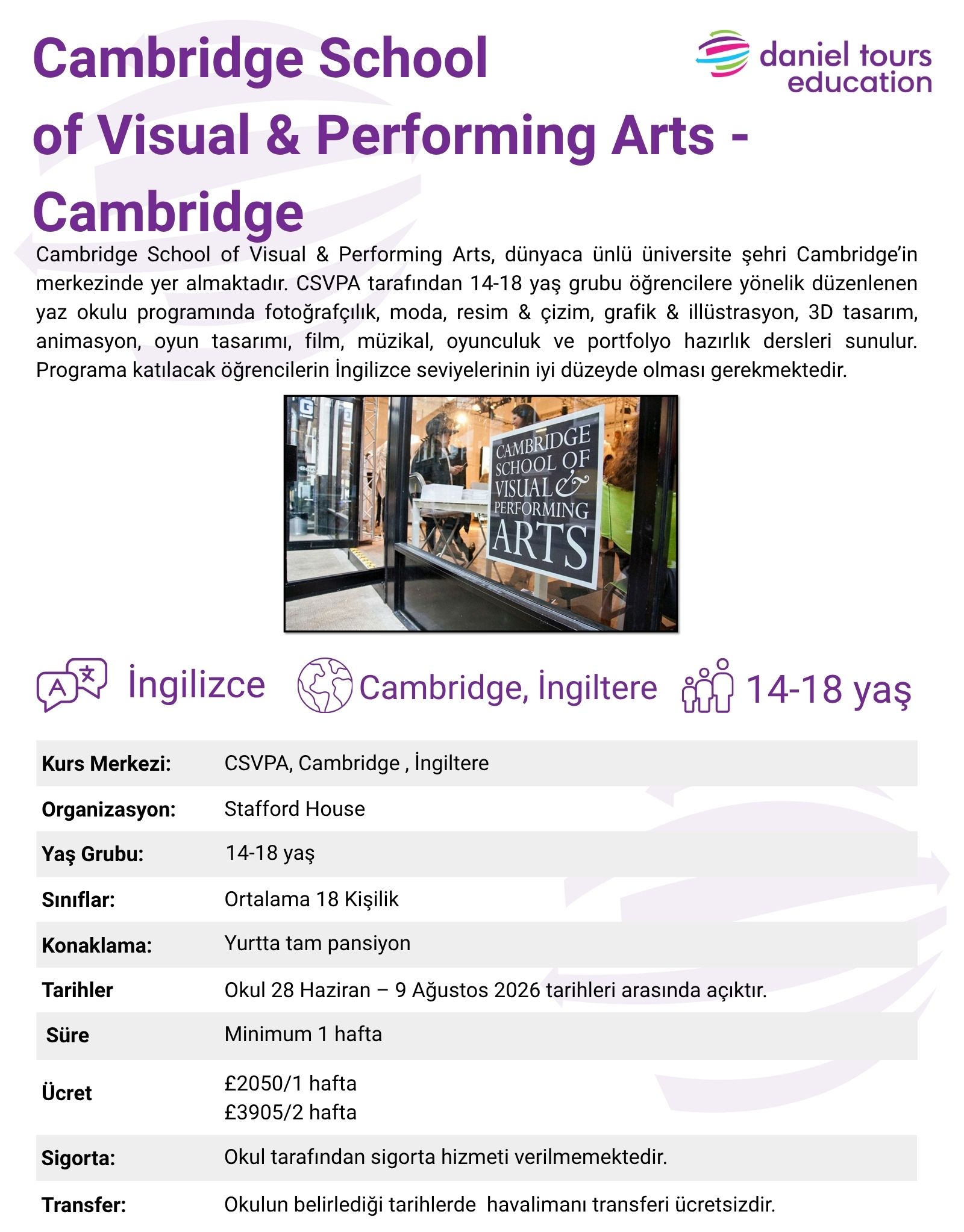 Cambridge School of Visual & Performing Arts - Cambridge - İngiltereYURT DIŞI YAZ KAMPI
