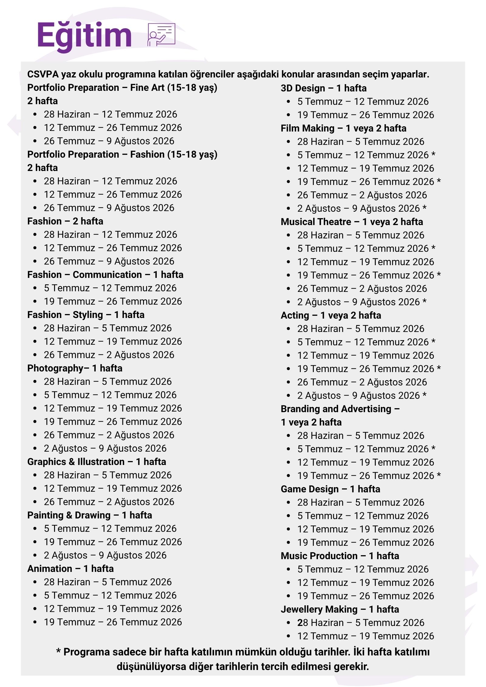 Okul 28 Haziran – 9 Ağustos 2026 tarihleri arasında açıktır.