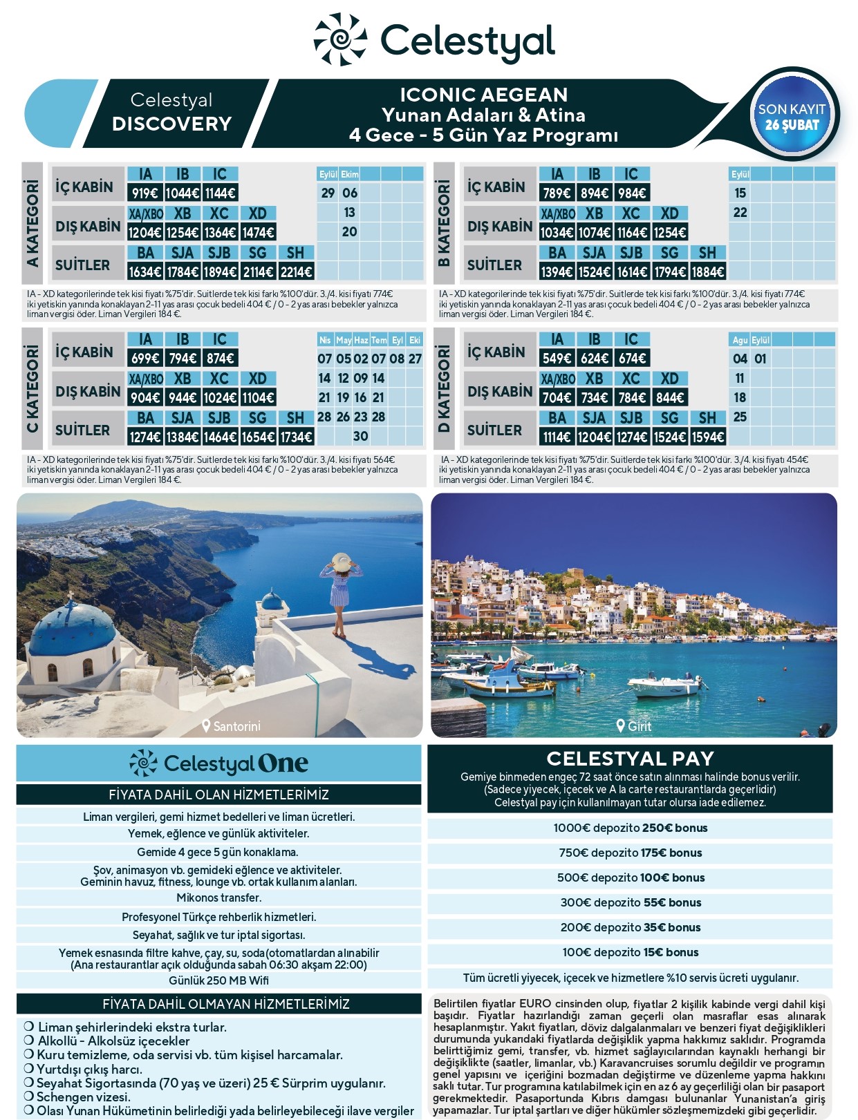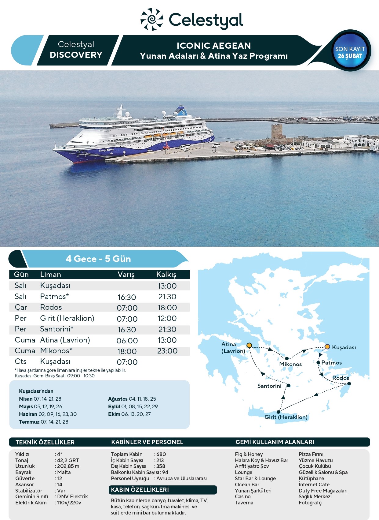Celestyal Discovery ile Iconic Aegean Yunan Adaları & Atina Yaz Programı Cruise TuruNisan ve Ekim Ayları Arası
