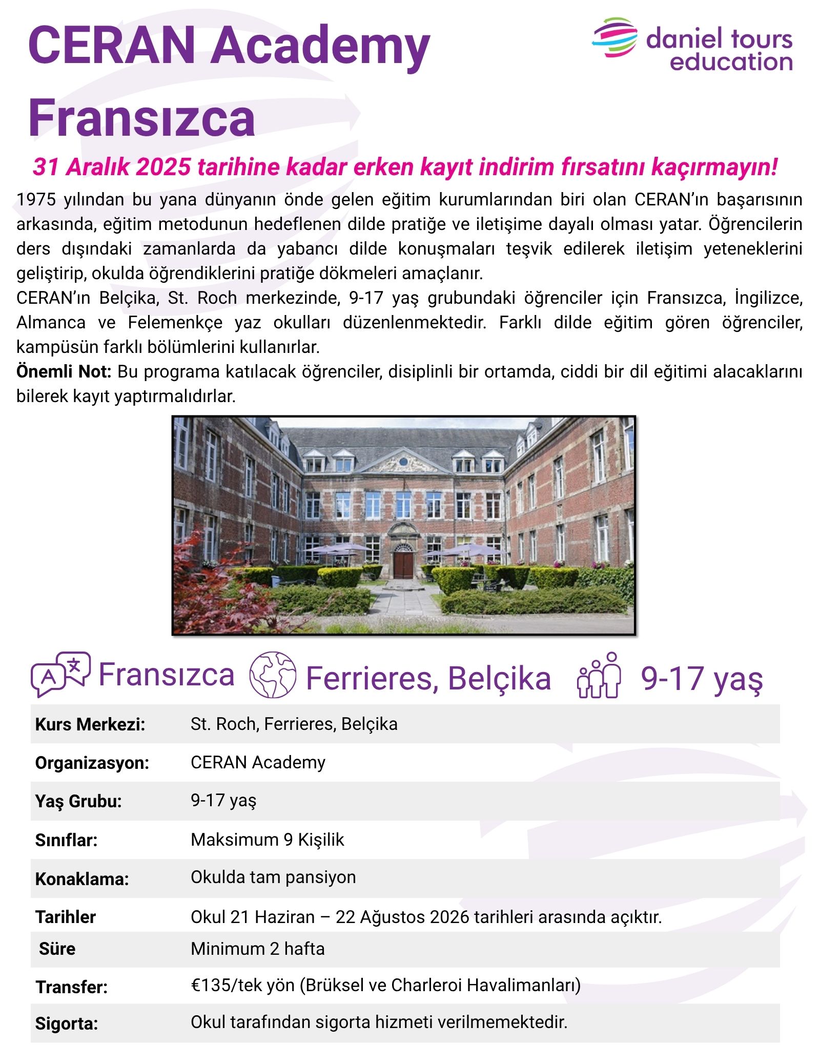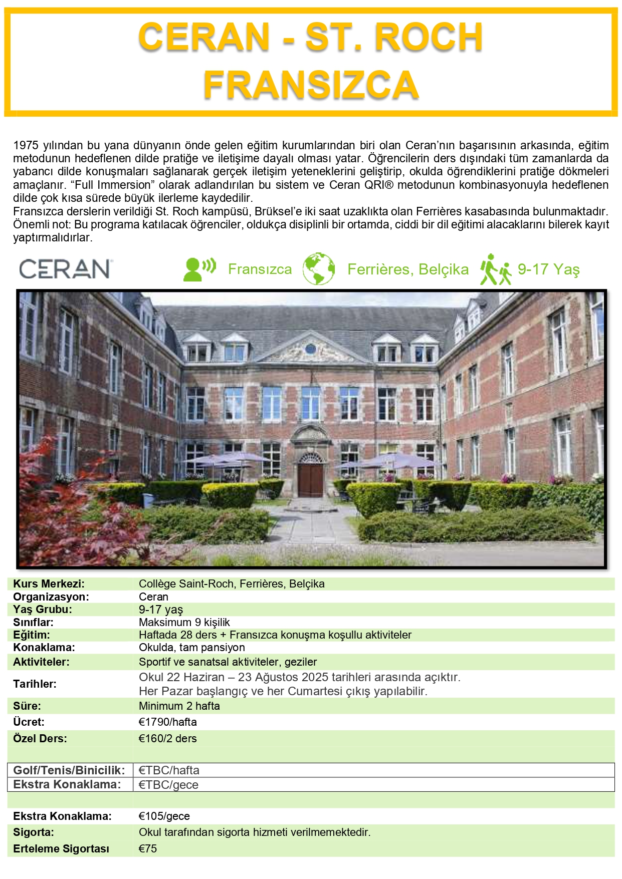 Ceran - St.Roch (Fransızca) Ferrieres - BelçikaYURT DIŞI YAZ KAMPI