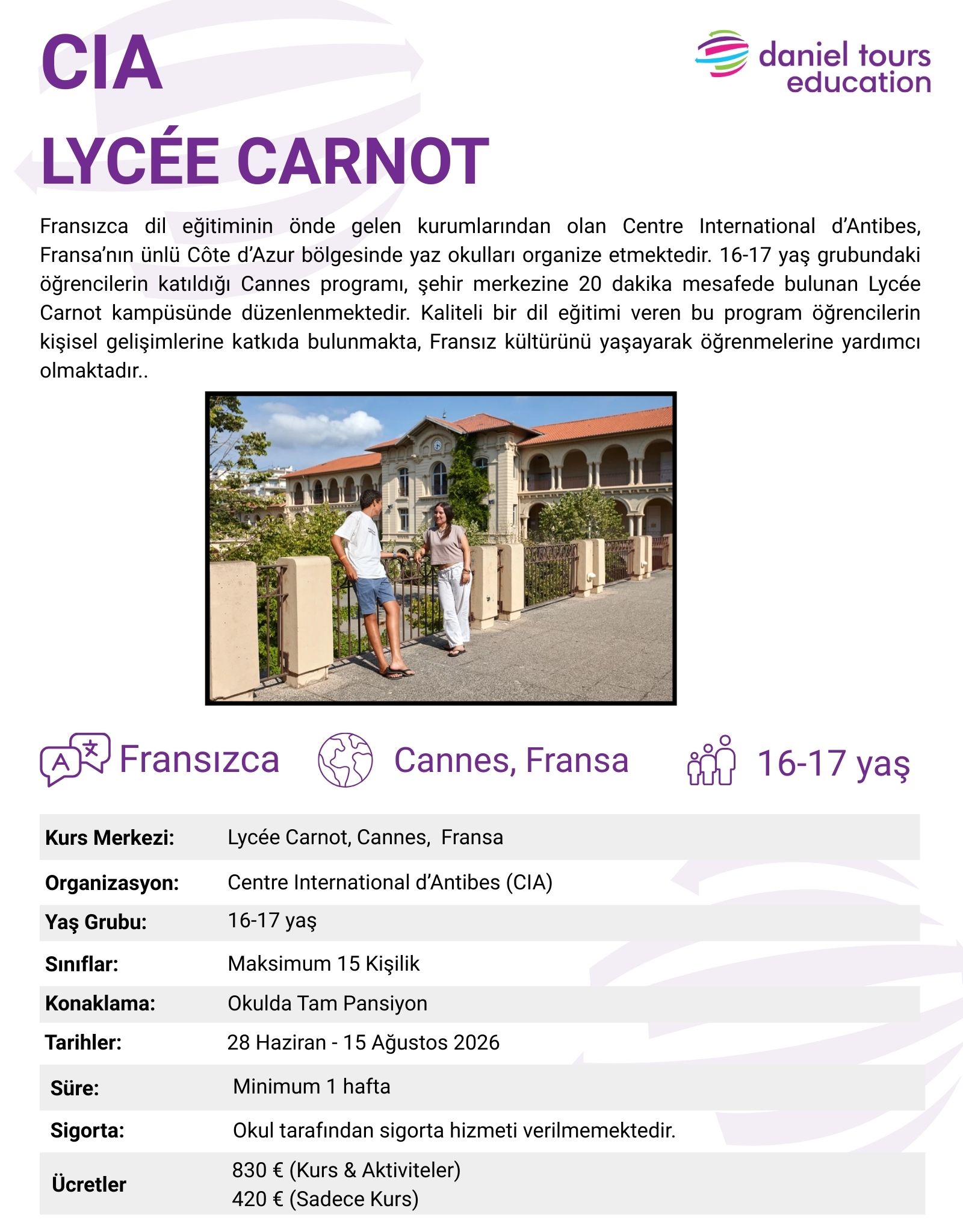 CIA - Cannes - FransaYURT DIŞI YAZ KAMPI