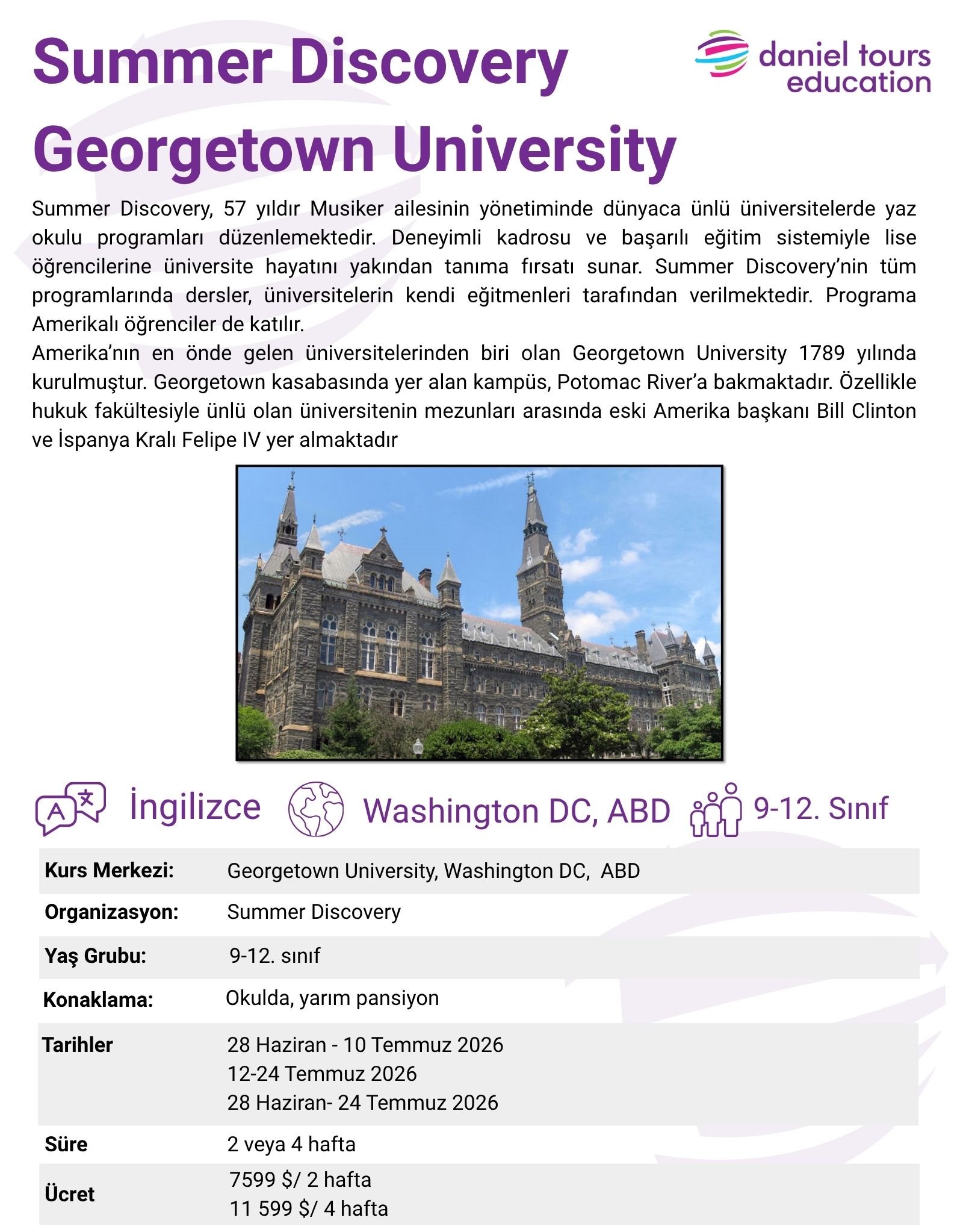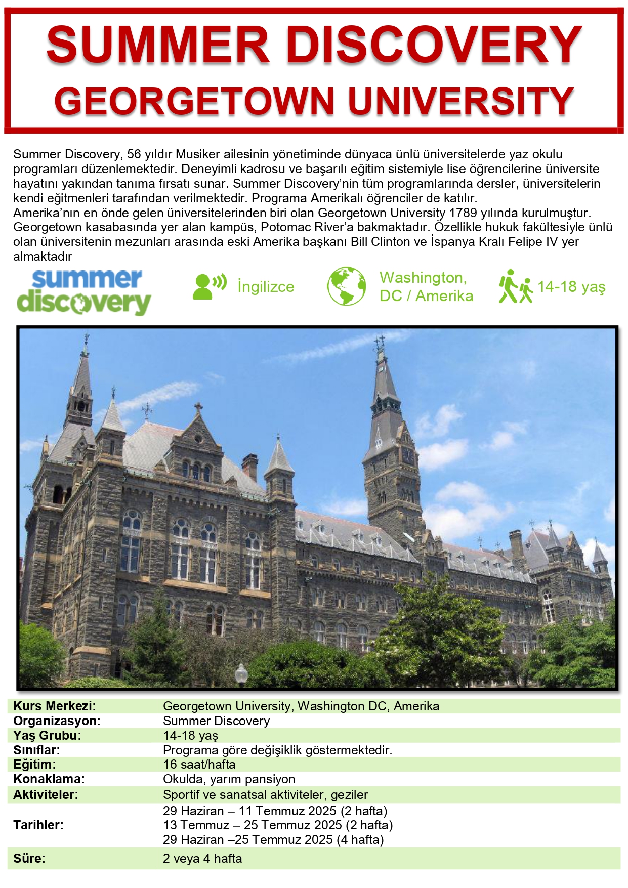 Summer Discovery - Georgetown University - Amerika YURT DIŞI YAZ KAMPI