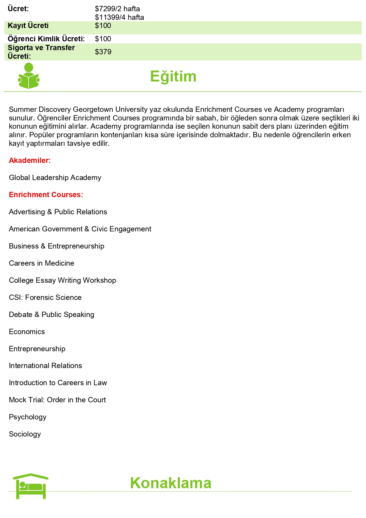 29 Haziran – 11 Temmuz 2025 (2 hafta) 13 Temmuz – 25 Temmuz 2025 (2 hafta) 29 Haziran –25 Temmuz 2025 (4 hafta)