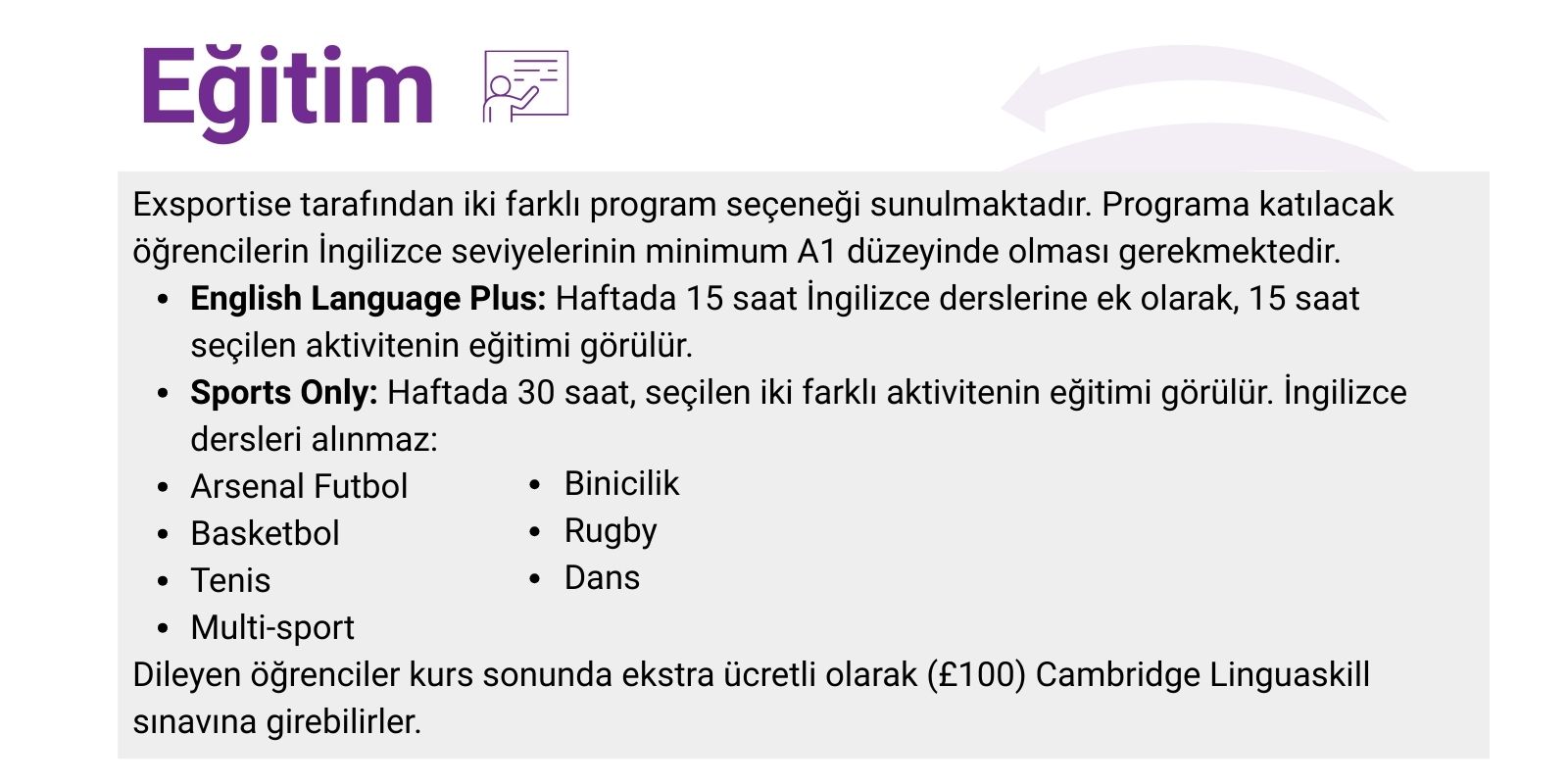 Sportif ve santasal etkinlikler ,Genel İngilizce
