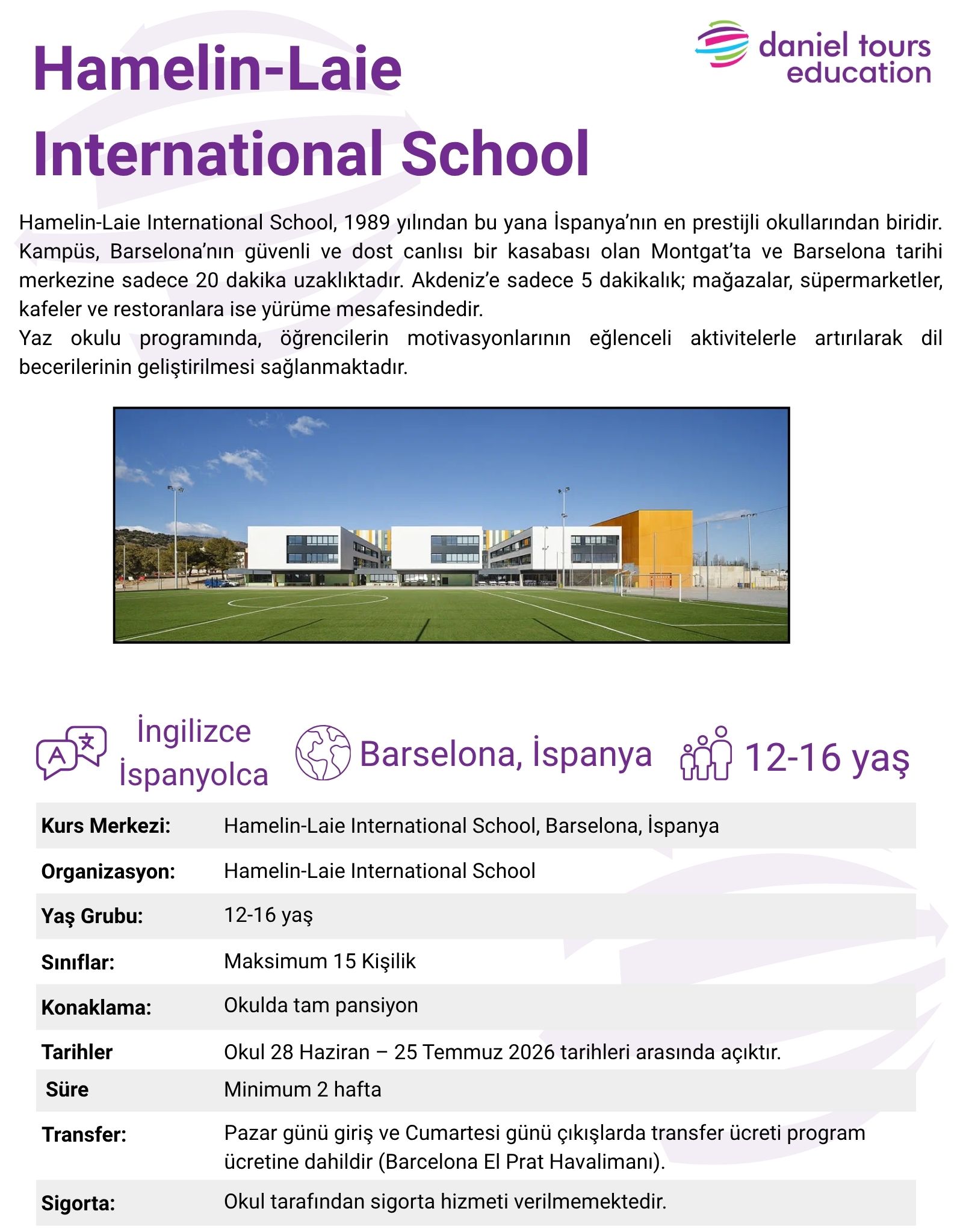 Hamelin-Laie Summer SchoolYURT DIŞI YAZ KAMPI