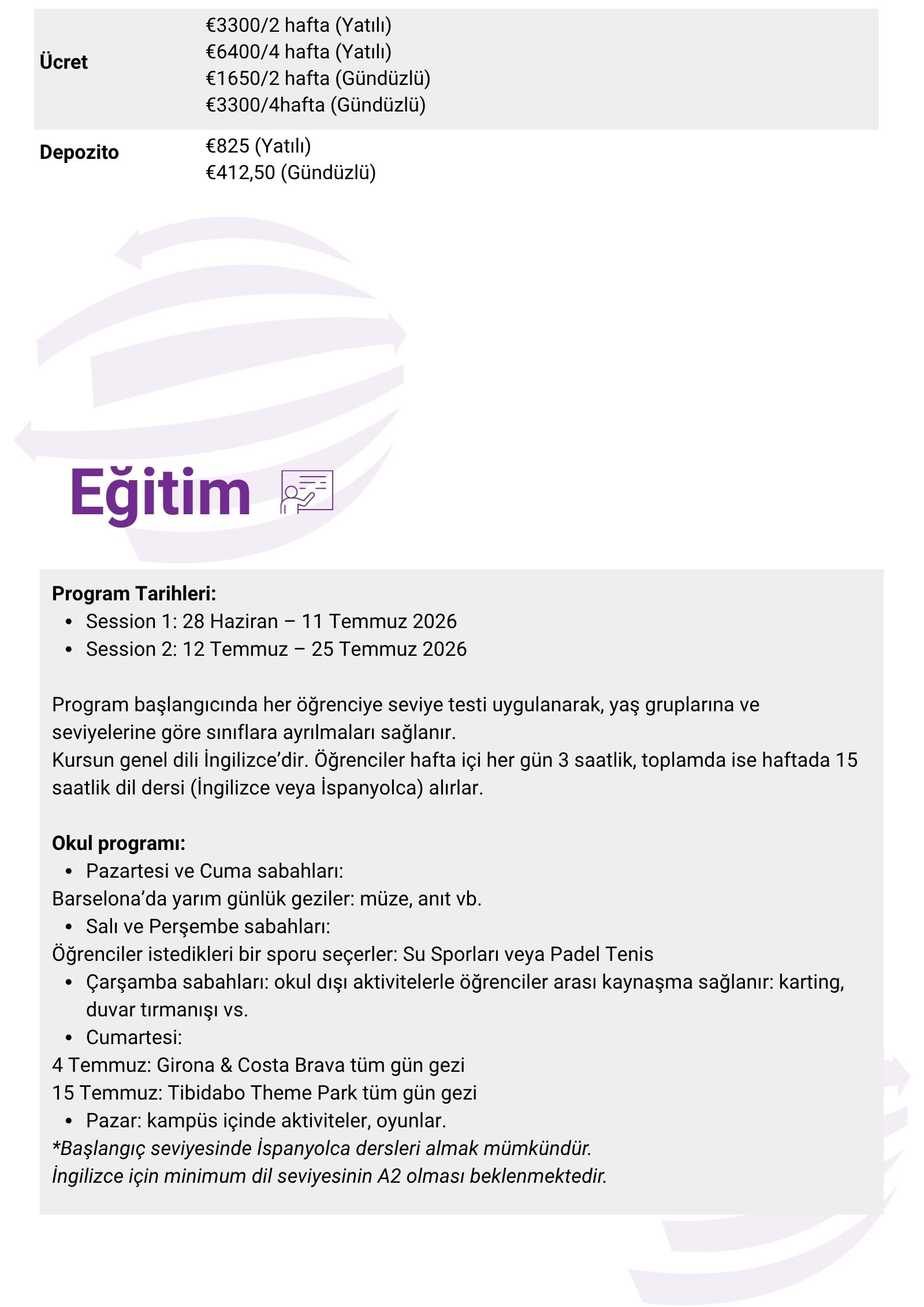 Okul 28 Haziran – 25 Temmuz 2026 tarihleri arasında açıktır.