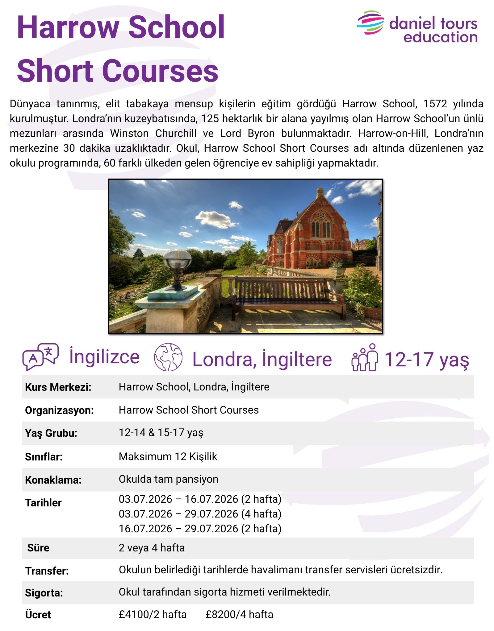 Harrow School - Short Course (12-17 Yaş) - London - İngiltereYURT DIŞI YAZ KAMPI