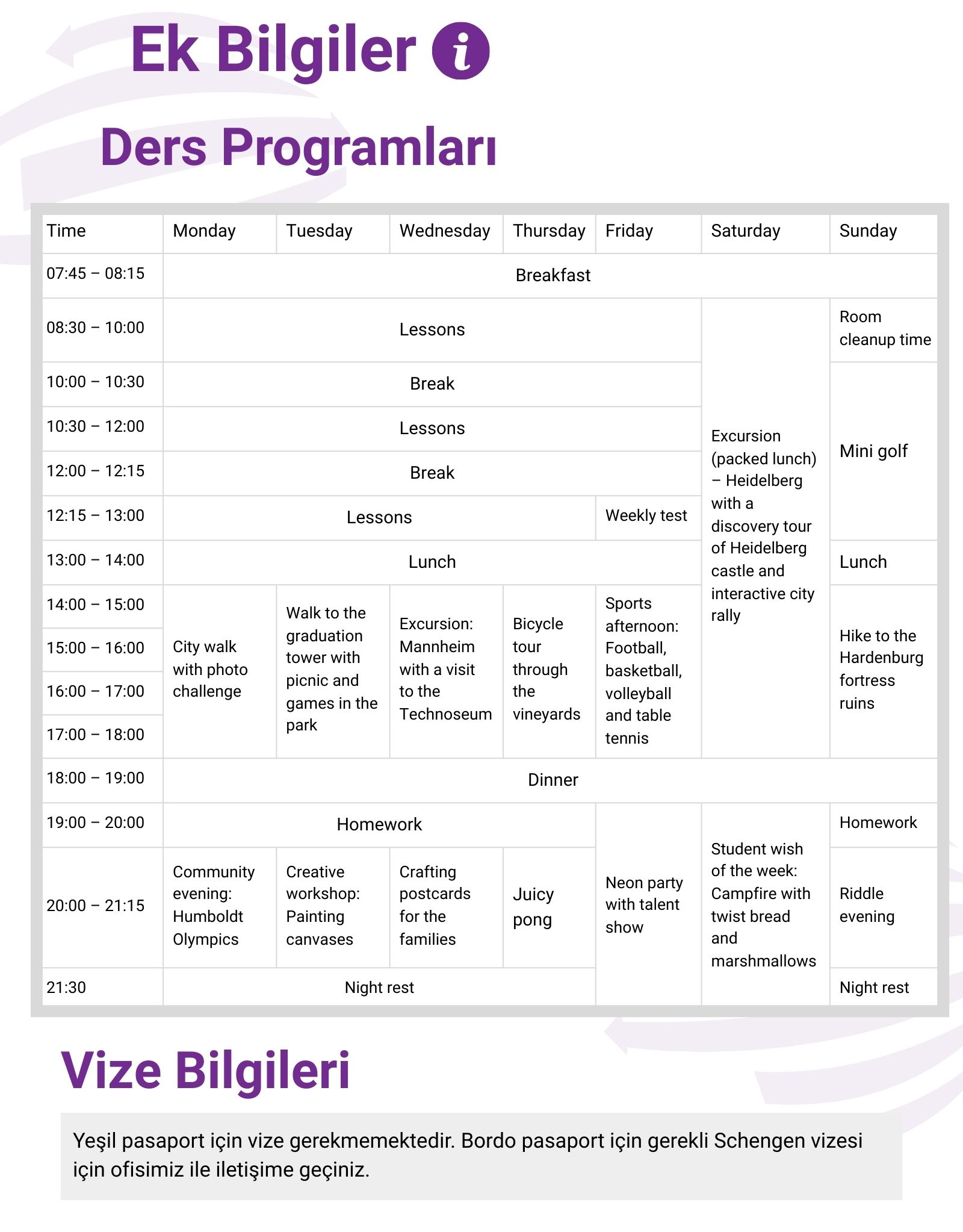 Ayrıntı fiyat bilgisi için acentemizin eğitim departmanıyla iletişime geçiniz.
