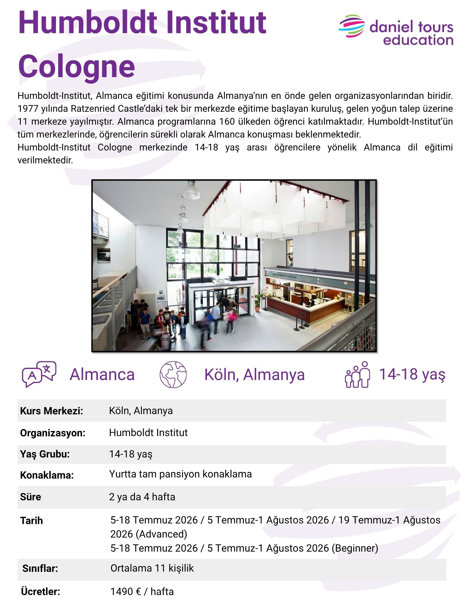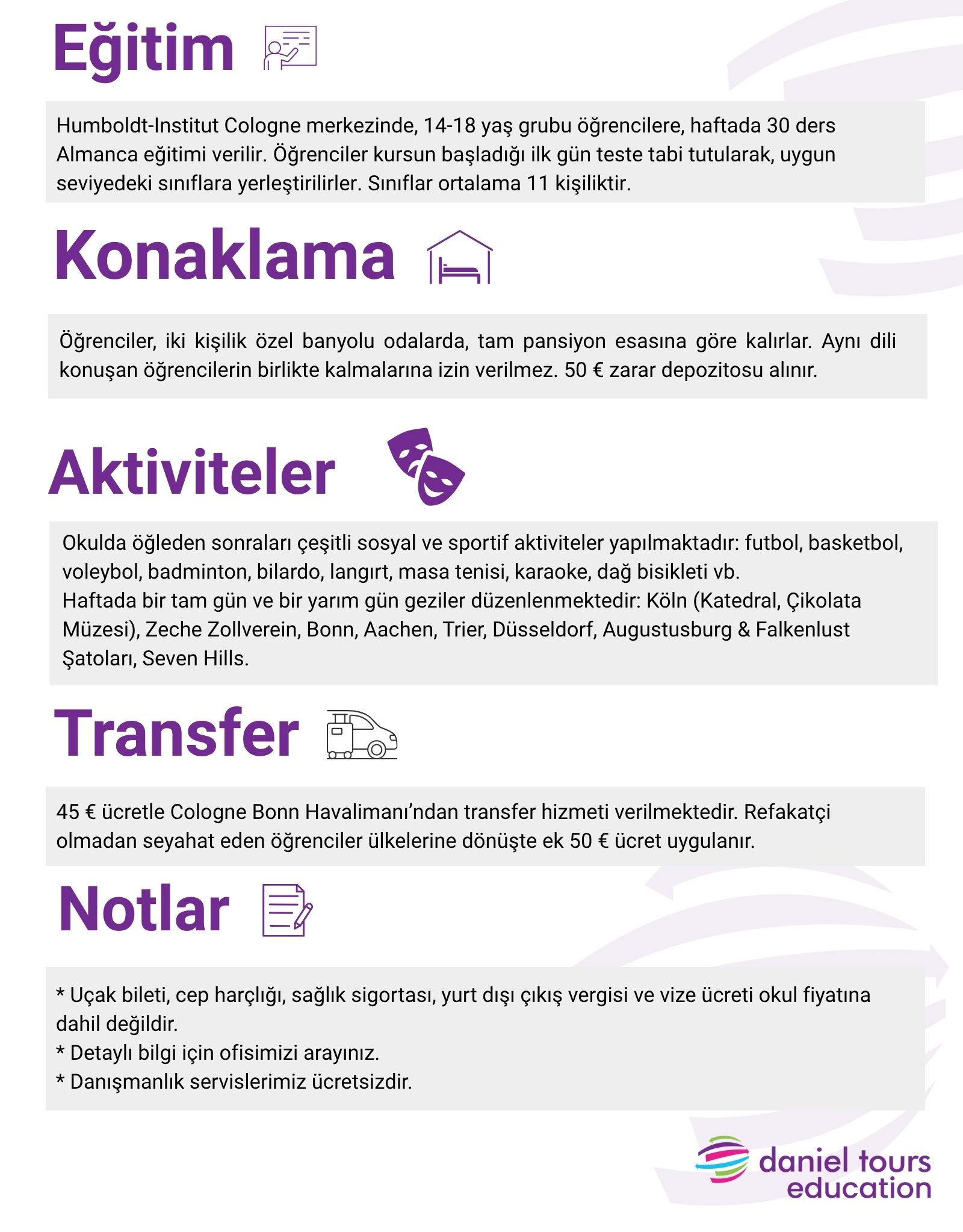 Ayrıntı fiyat bilgisi için acentemizin eğitim departmanıyla iletişime geçiniz.