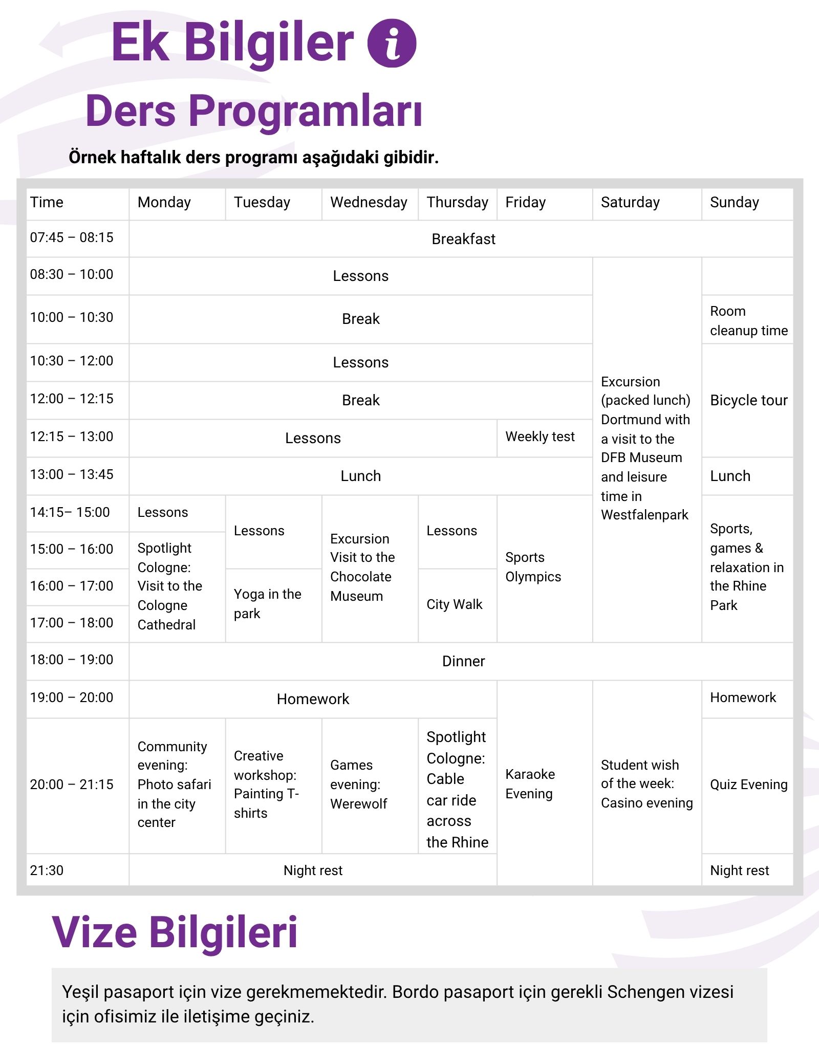 Yeşil pasaport için vize gerekmemektedir. Bordo pasaport için gerekli Schengen vizesi için ofisimiz ile iletişime geçiniz.