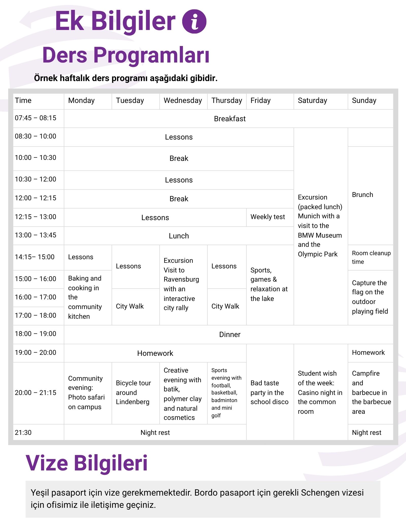 Ayrıntı fiyat bilgisi için acentemizin eğitim departmanıyla iletişime geçiniz.