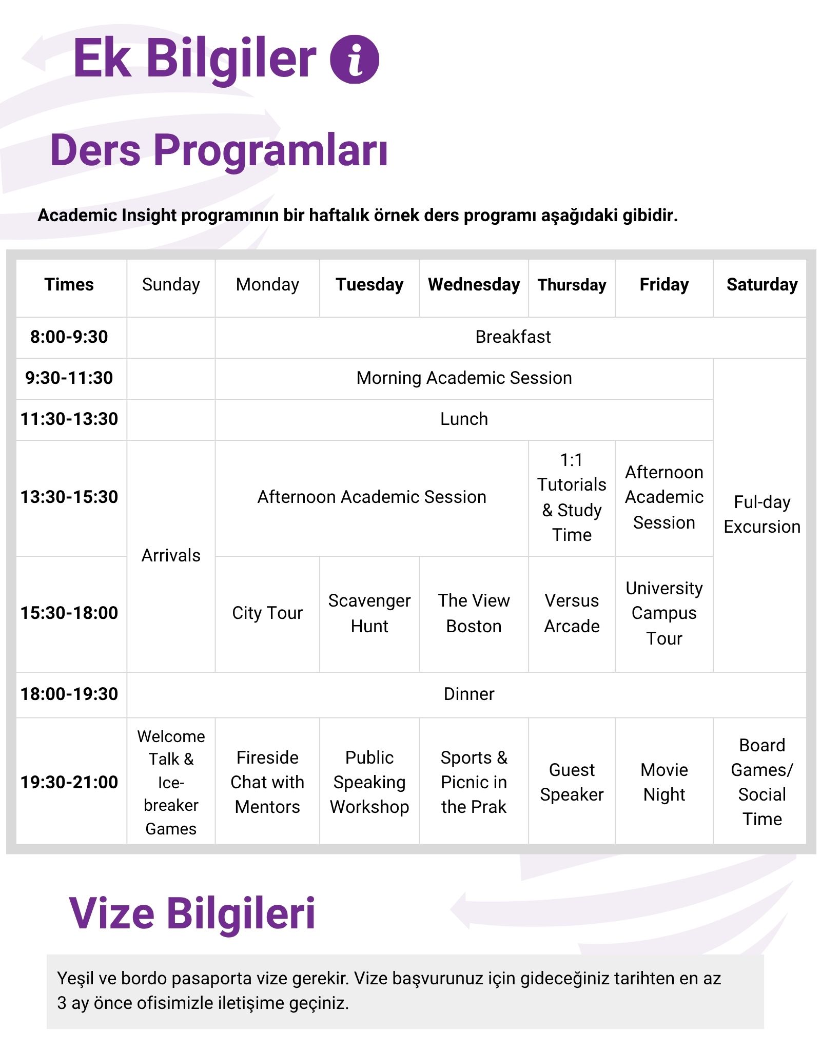 Yeşil ve bordo pasaporta vize gerekir. Vize başvurunuz için gideceğiniz tarihten en az 3 ay önce ofisimizle iletişime geçiniz.
