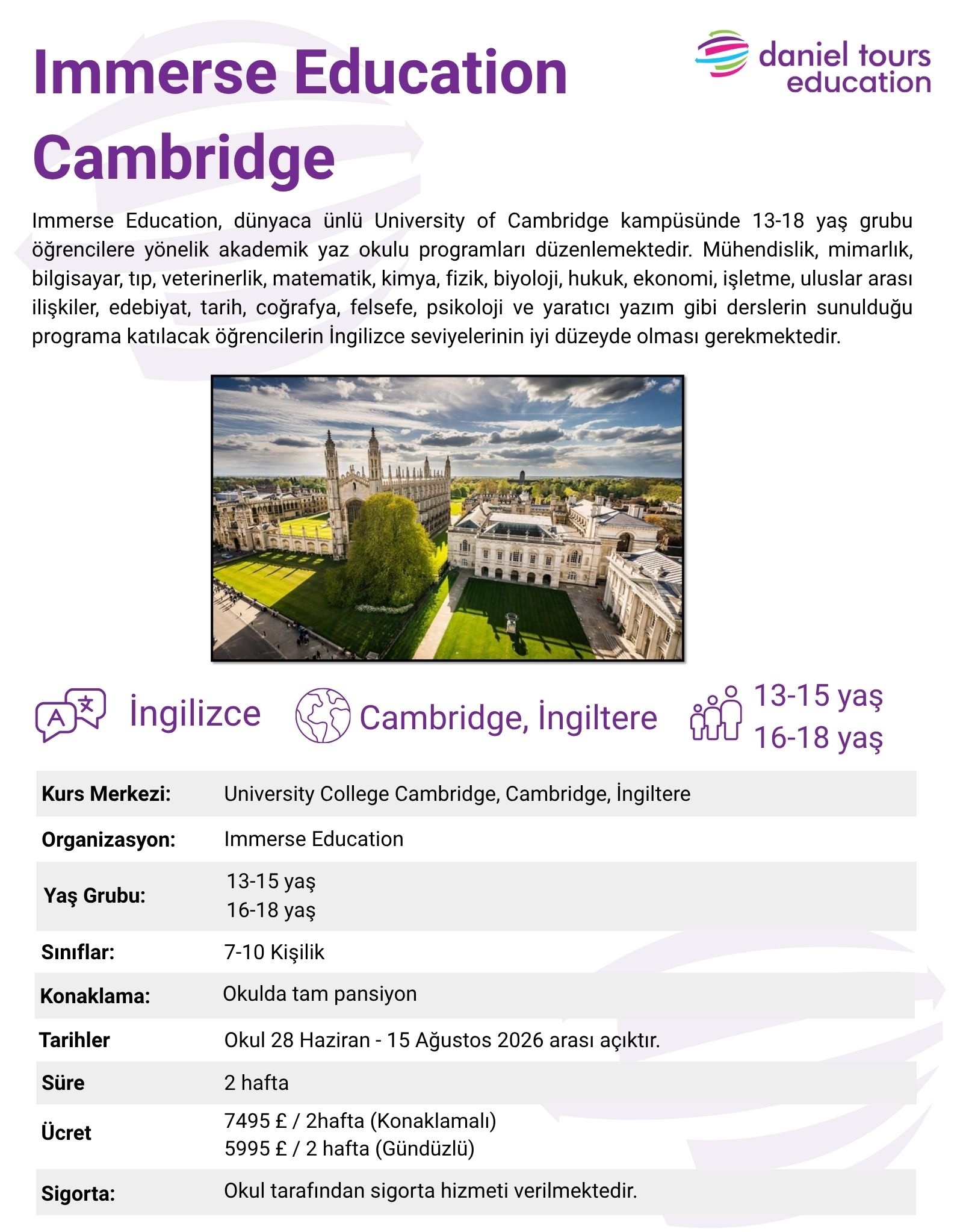 IMMERSE EDUCATION CAMBRIDGE SCHOOLYurt Dışı Yaz Kampı