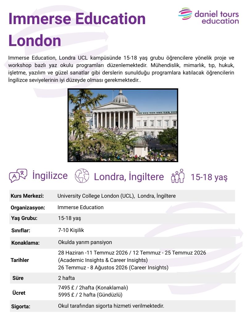 Immerse Education UCL LondonYurt Dışı Yaz Kampı