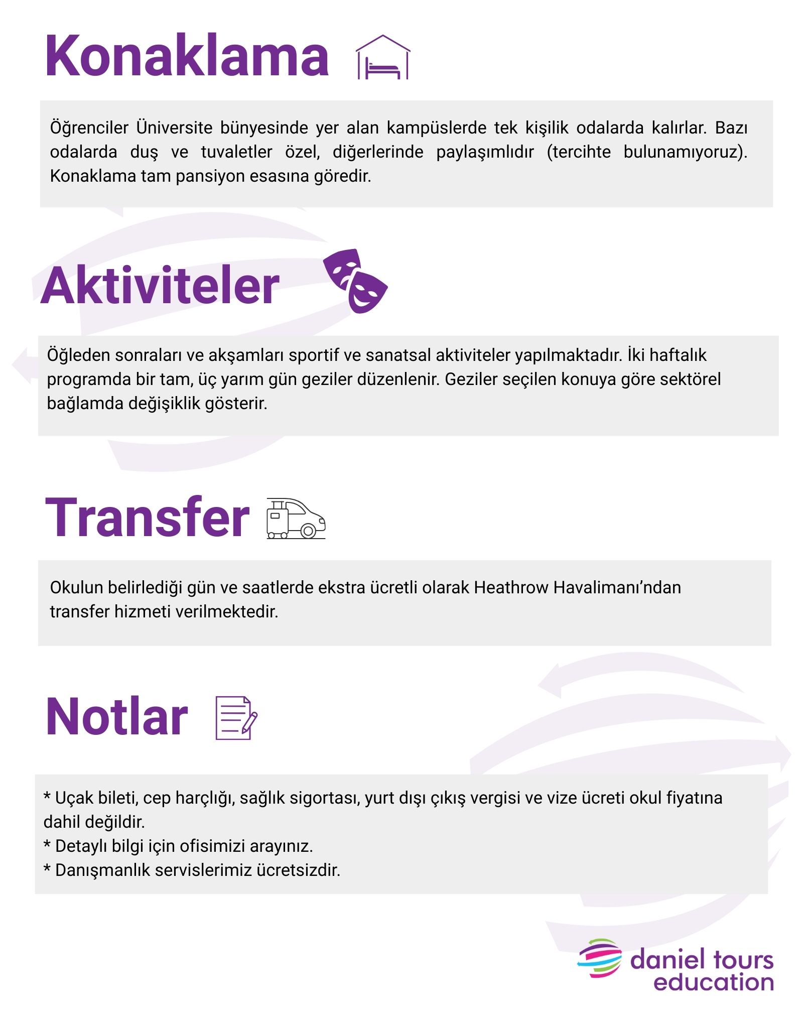 Bir iptali işlerken işlem ve idari masrafları karşılamak amacıyla £95 tutarında iptal ücreti talep etme hakkımızı saklı tutarız.