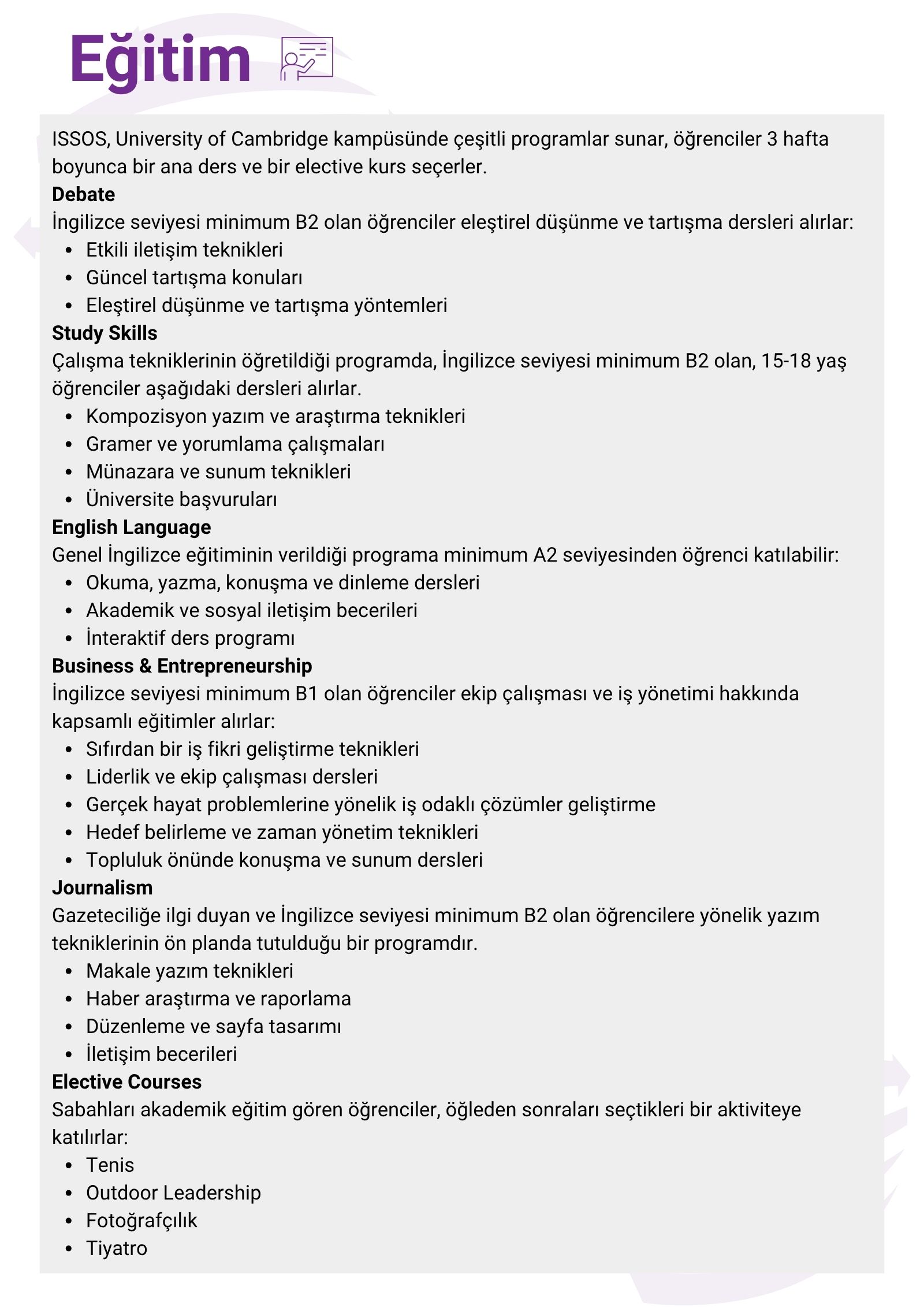ISSOS - Cambridge - İngiltereYURT DIŞI YAZ KAMPI