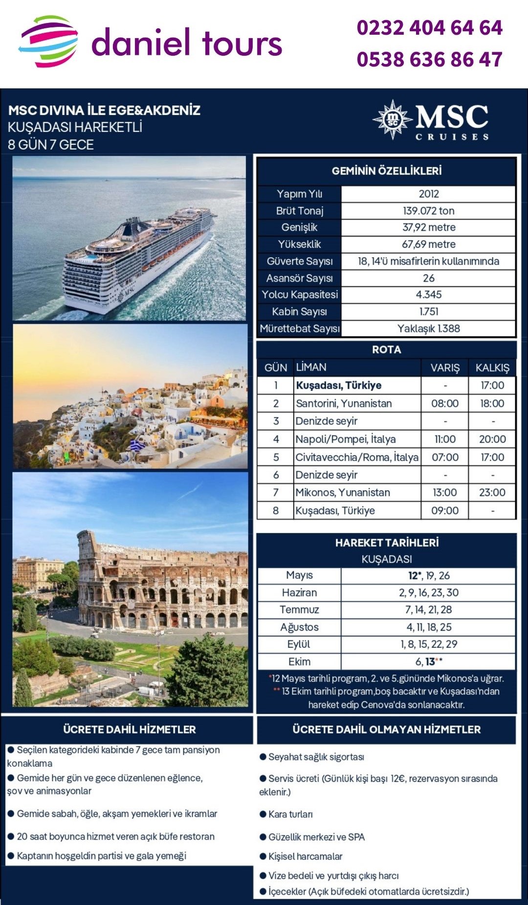 MSC Divina ile Ege & AkdenizKuşadası Hareketli MSC Divina ile Ege & Akdeniz
