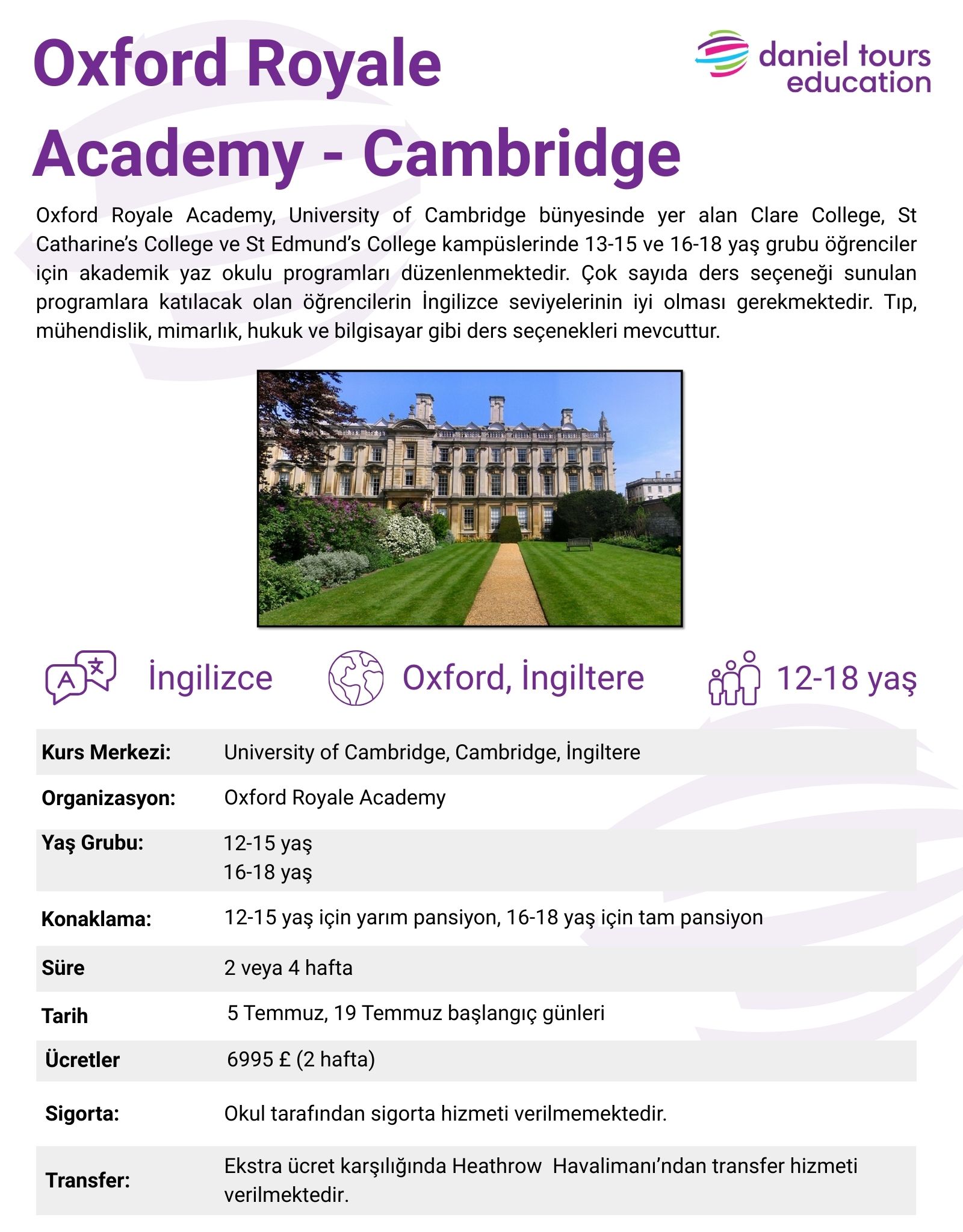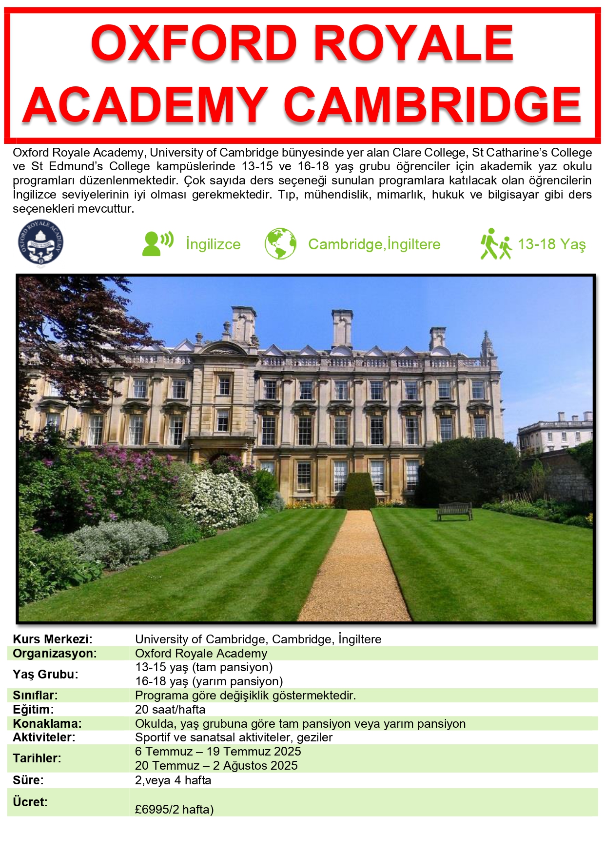 Oxford Royale Academy - Cambridge - İngiltereYURT DIŞI YAZ KAMPI