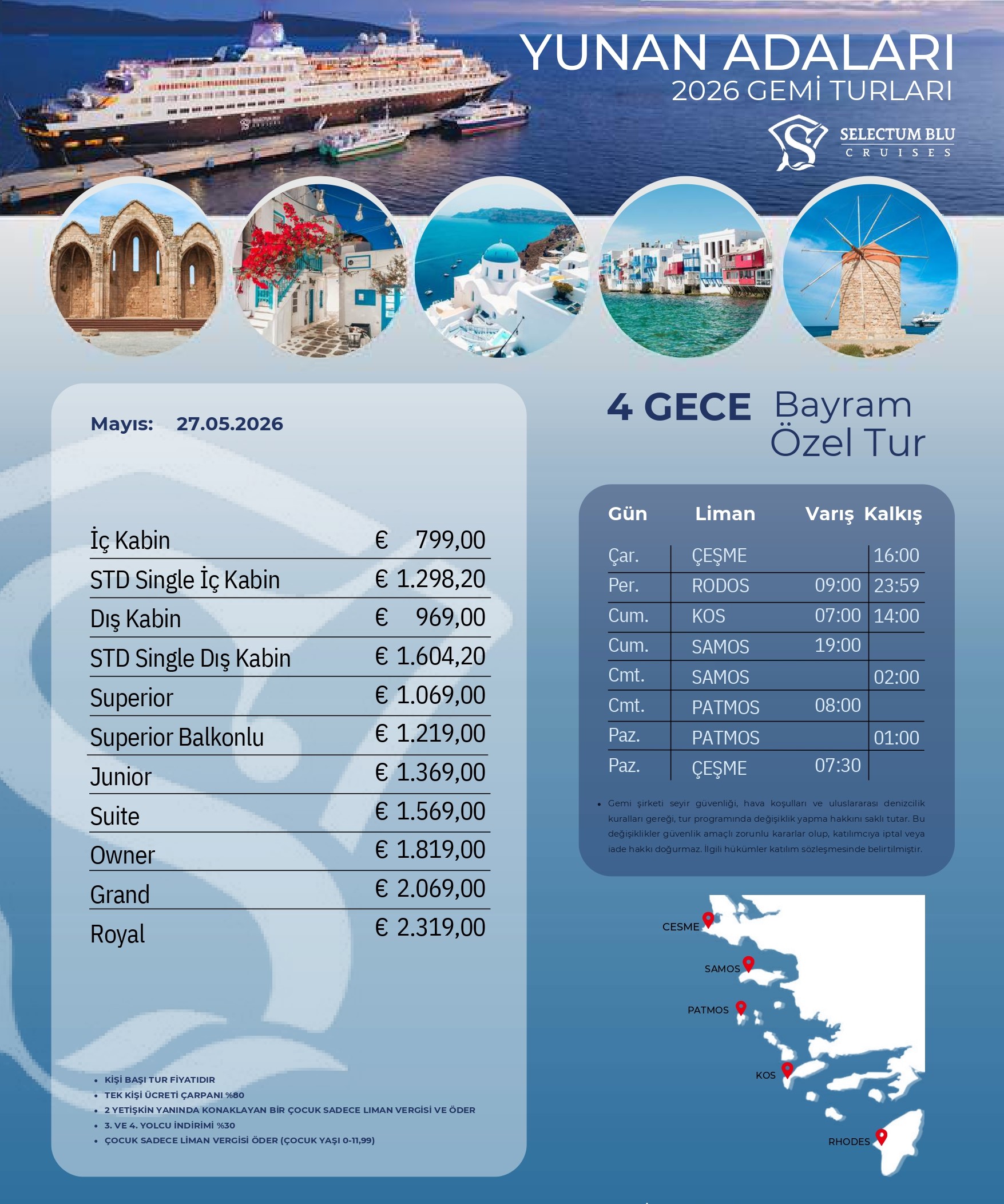 Bu turun operasyonu Selectum Blu Cruises’a aittir. Daniel Tours satış acentasıdır.
