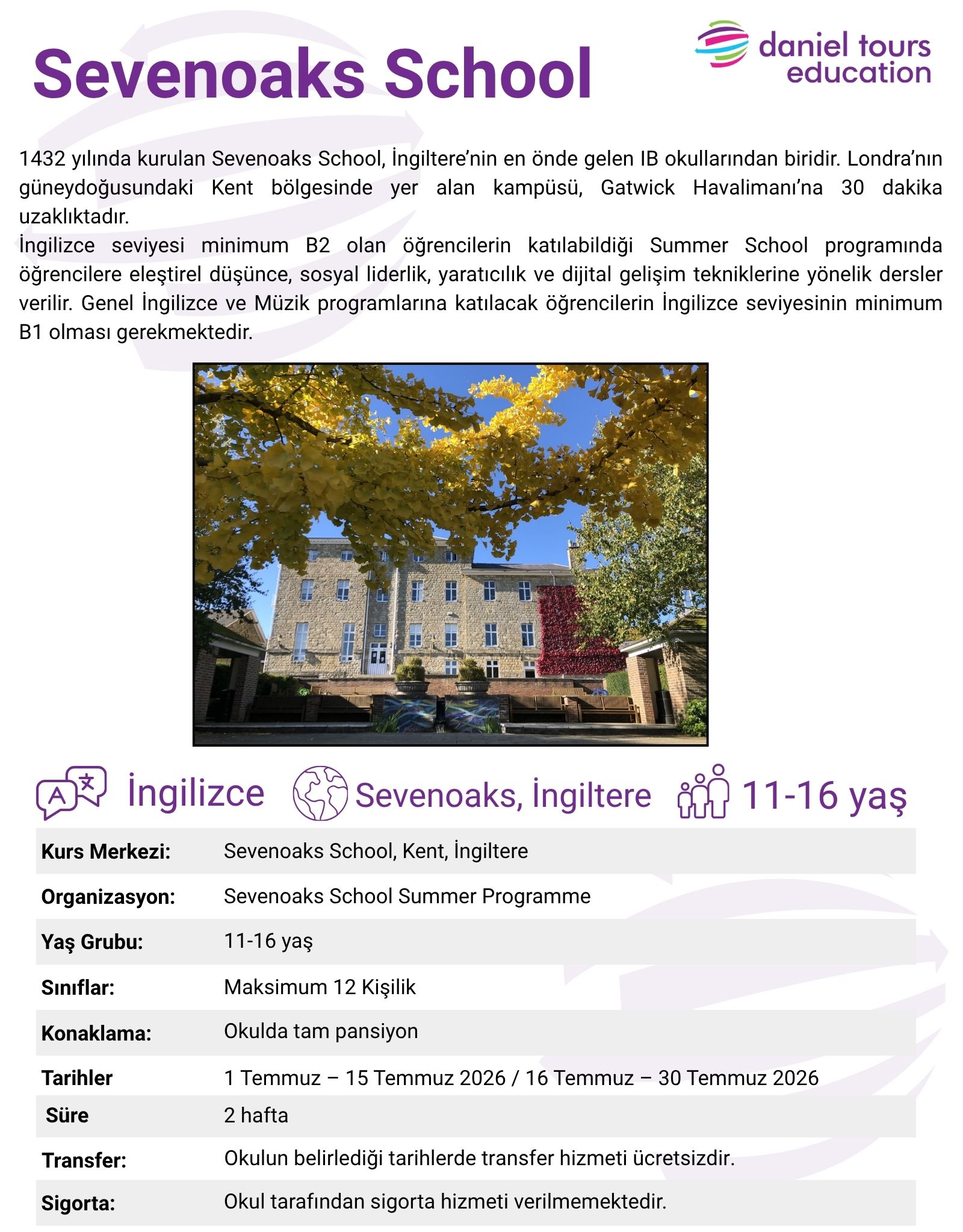 Sevenoaks School - Sevenoaks - İngiltereYURT DIŞI YAZ KAMPI