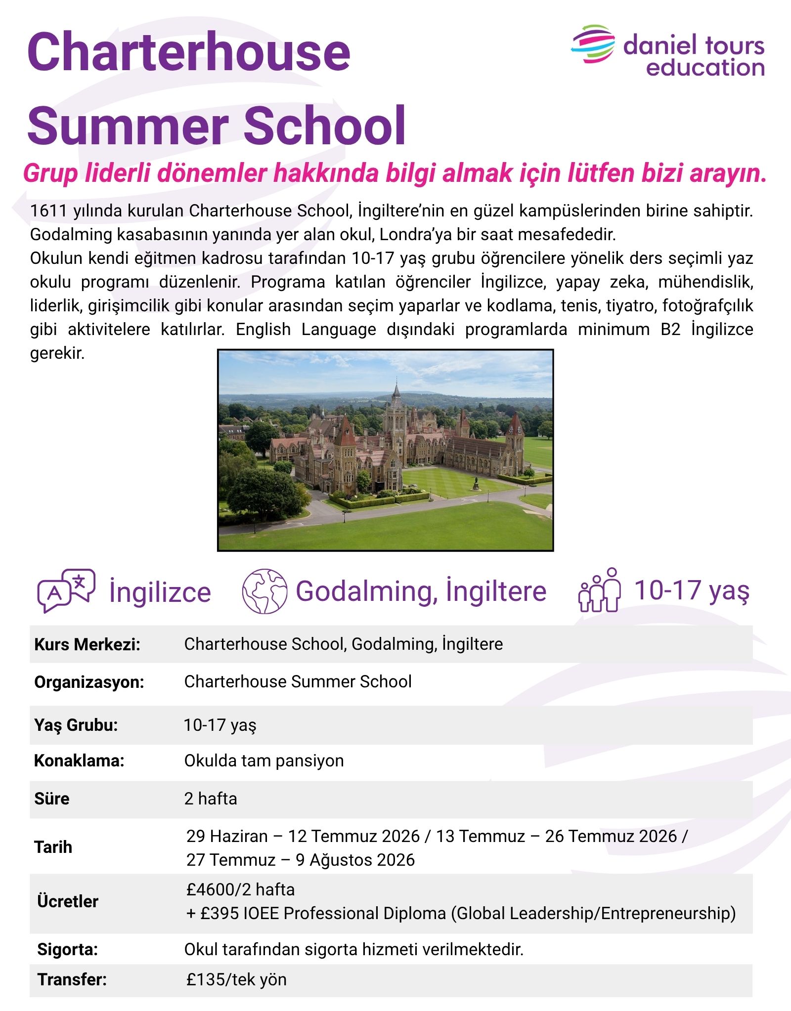 CHARTERHOUSE SCHOOL - INGILTERE - GRUP LIDERLIYurt Dışı Yaz Kampı