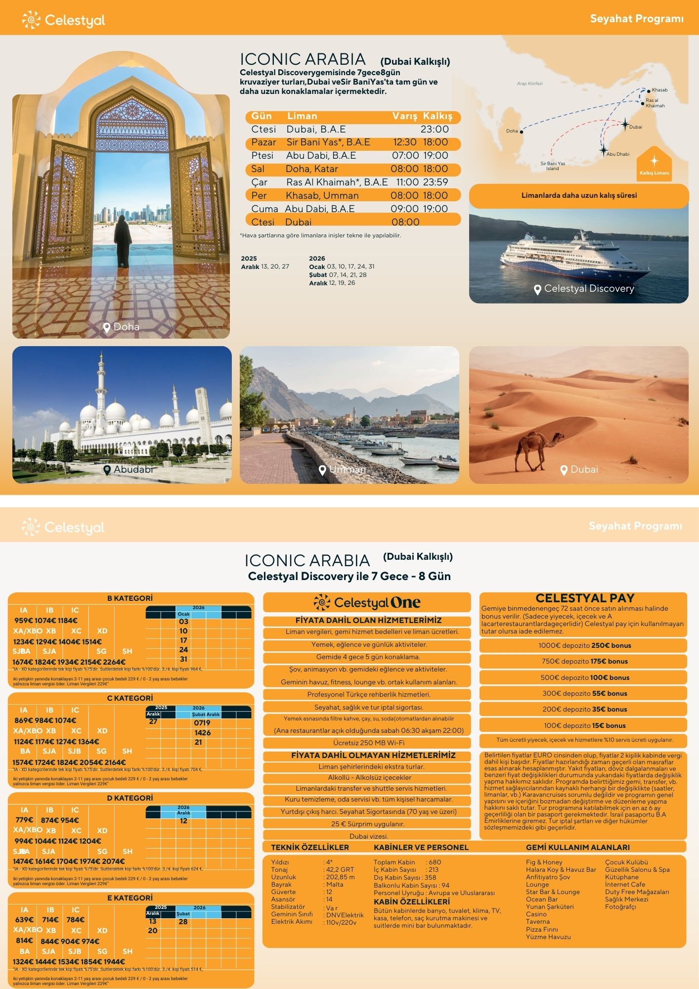 Celestyal Discovery ile Arap Yarım Adası Dubai Kalkışlı13 Aralık 2025'den İtibaren