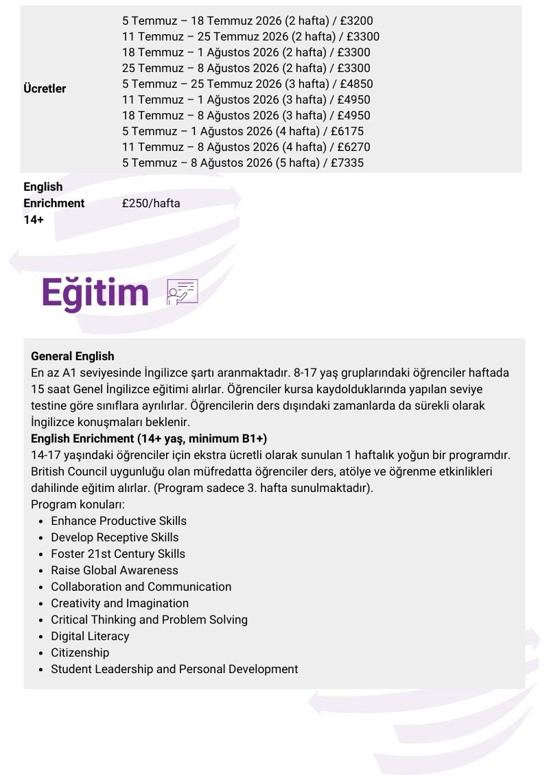 İngilizce yaz kampı
