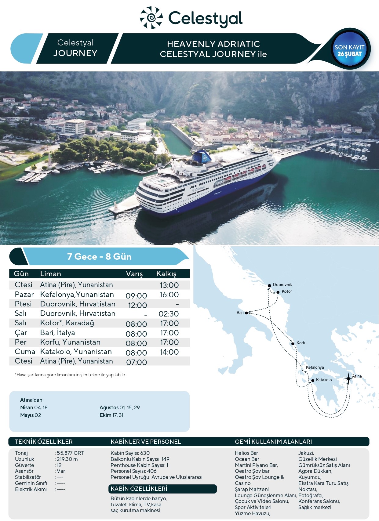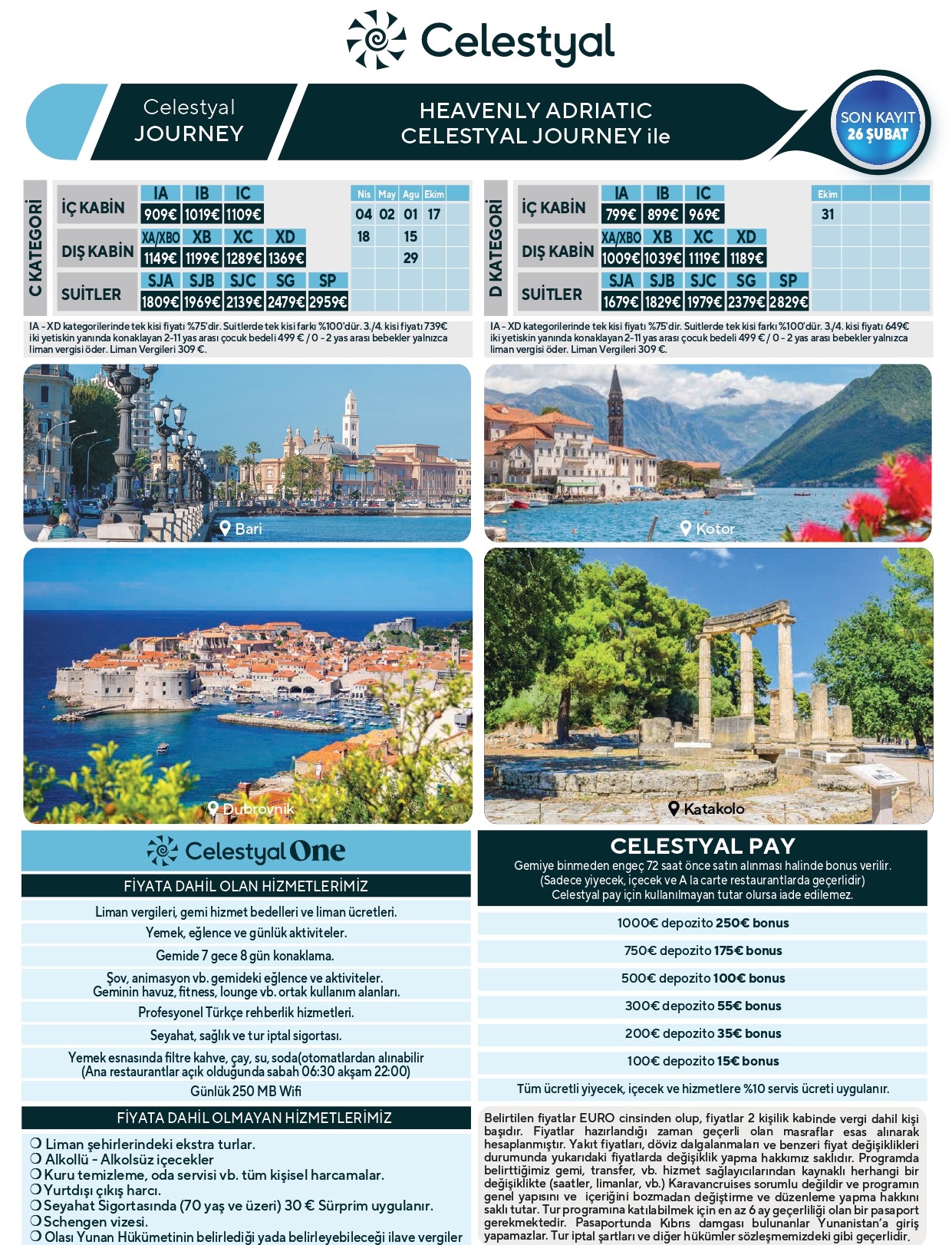 Celestyal Journey ile Journey Heavenly Adriyatik Kıyıları Cruise Turu4 Nisan 2026'dan İtibaren