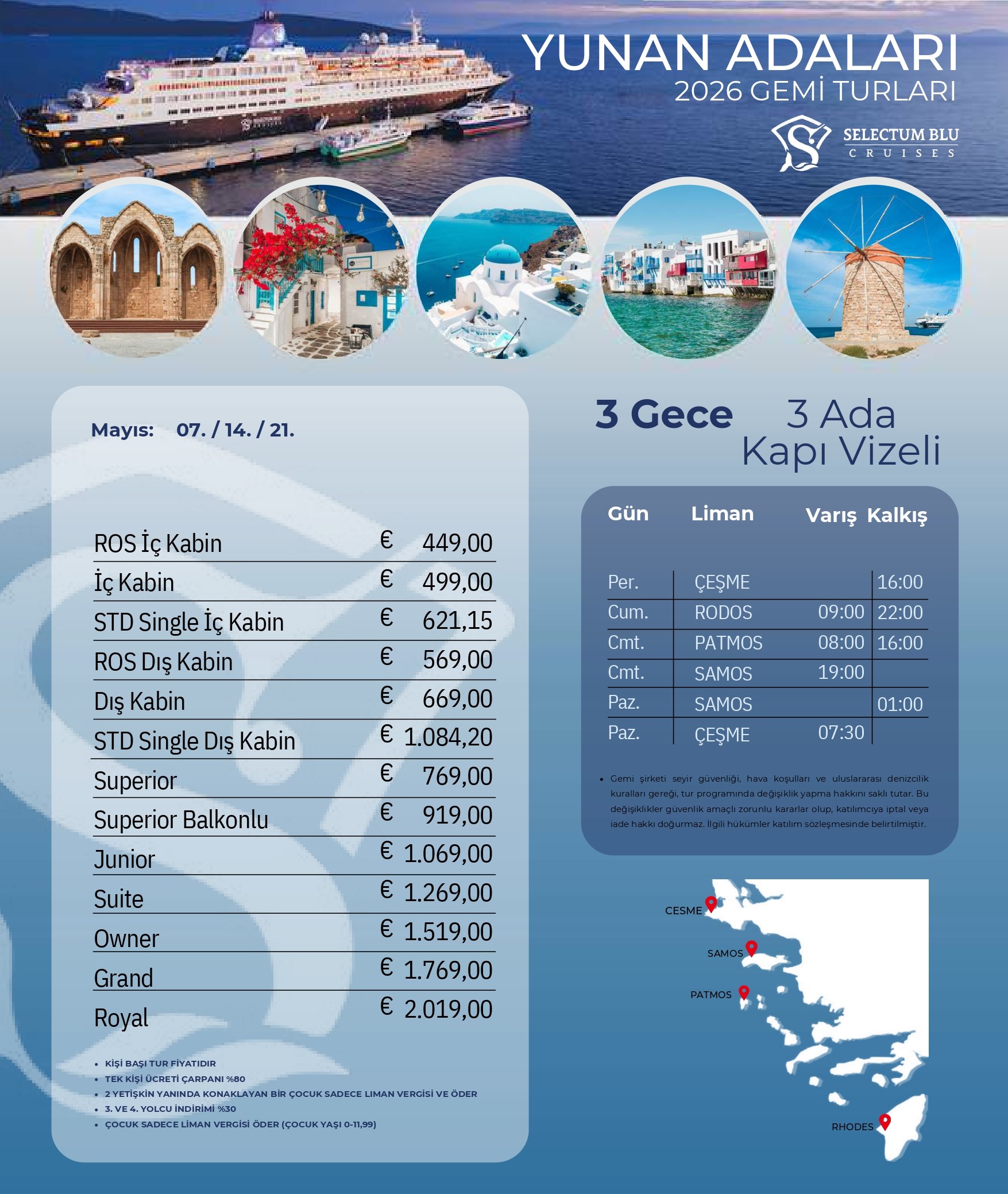 Bu turun operasyonu Selectum Blu Cruises’a aittir. Daniel Tours satış acentasıdır.
