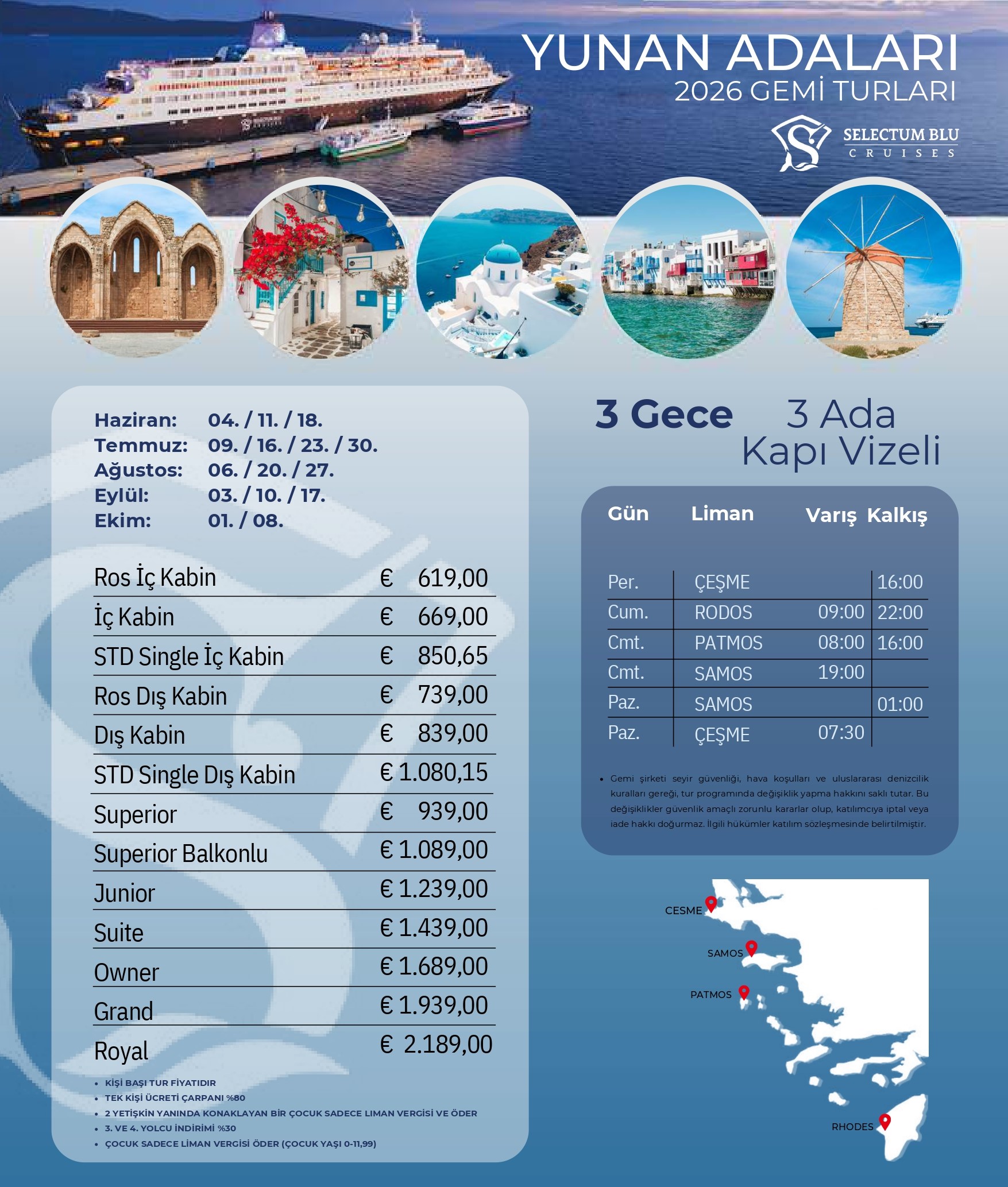 Selectum Blu Sapphire İle Çeşme Hareketli Yunan Adaları 3 Gece 3 AdaSelectum Blu Sapphire İle Çeşme Hareketli Yunan Adaları Yaz Dönemi 3 Gece 3 Ada