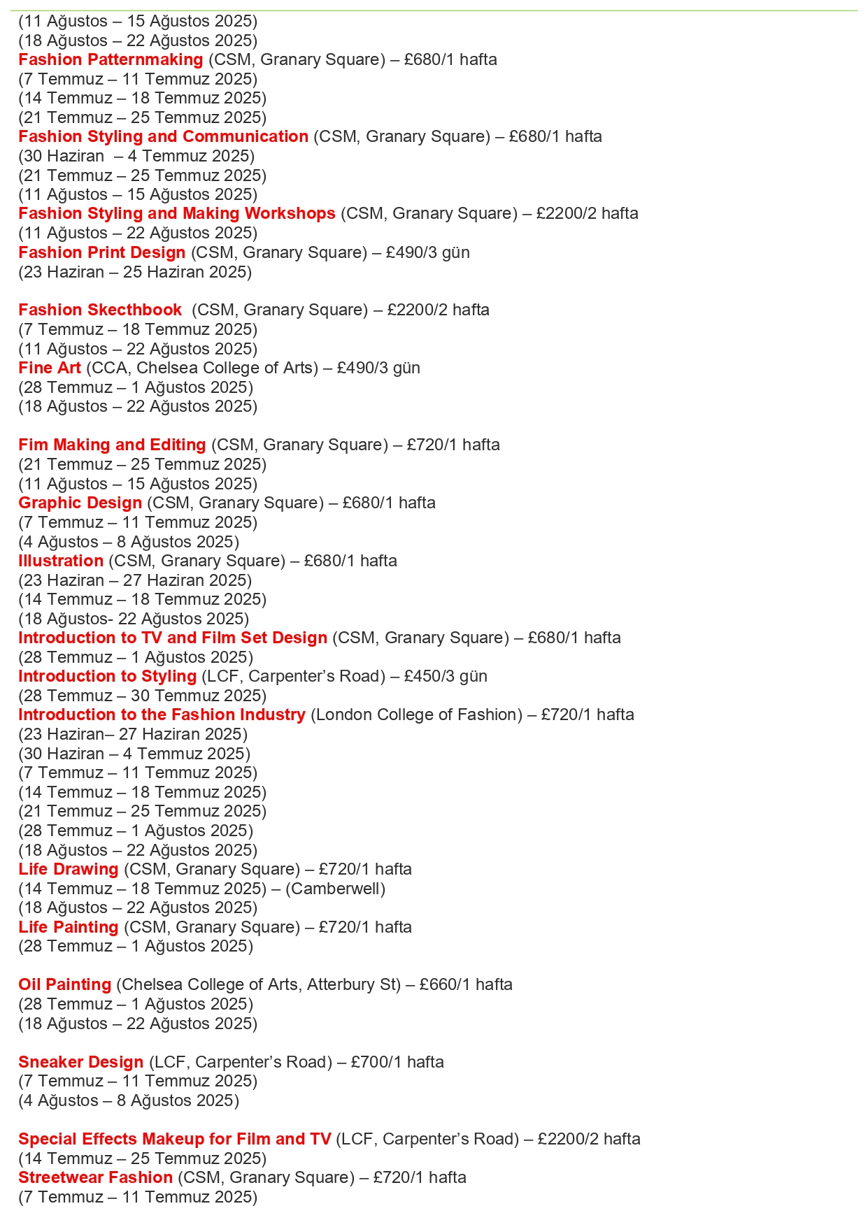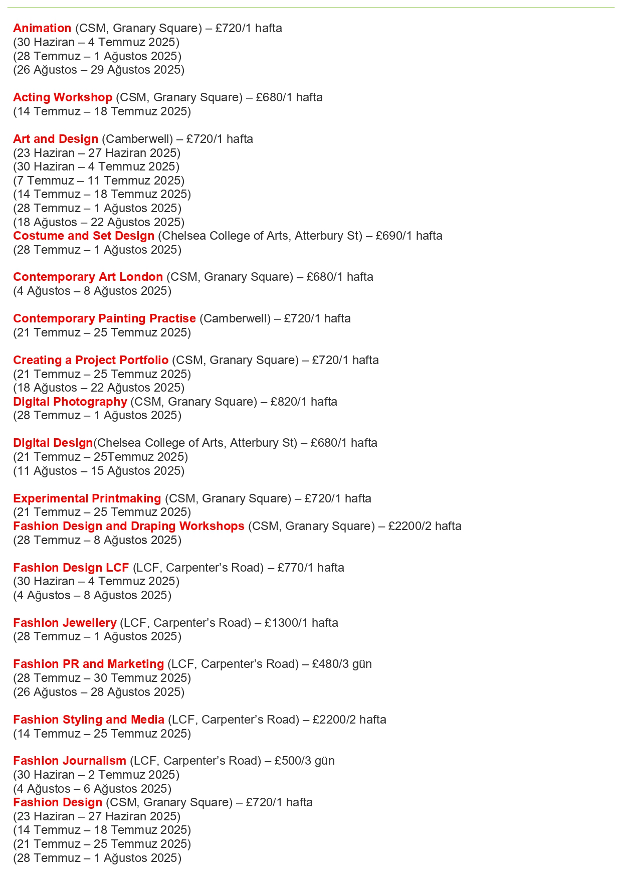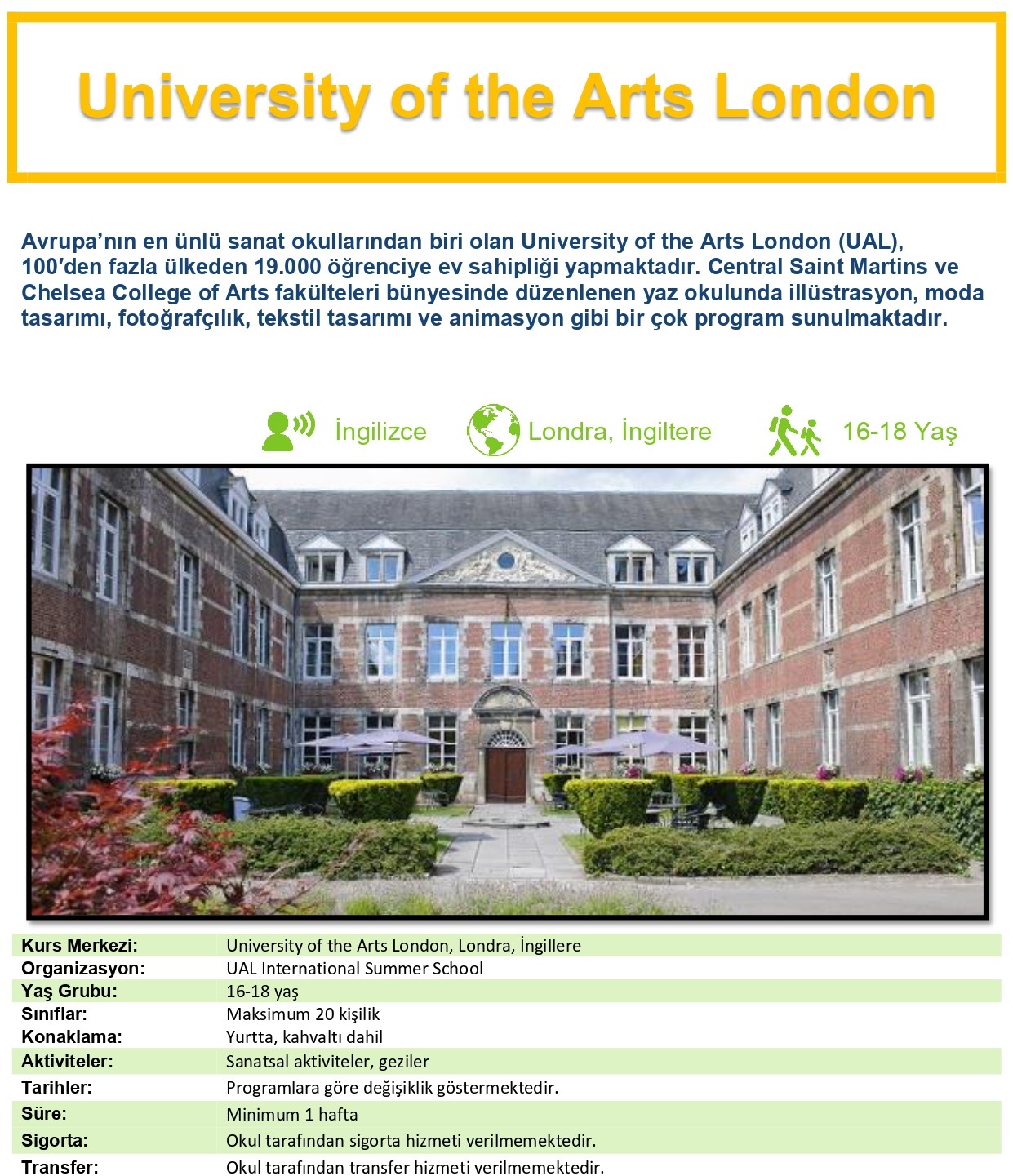 University of the Arts London- İngiltereYurt Dışı Yaz Kampı