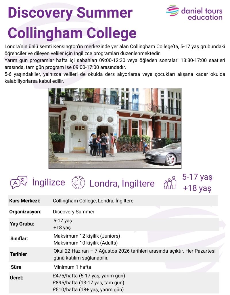 Discovery Summer - Collingham College - Londra - İngiltereYURT DIŞI YAZ KAMPI
